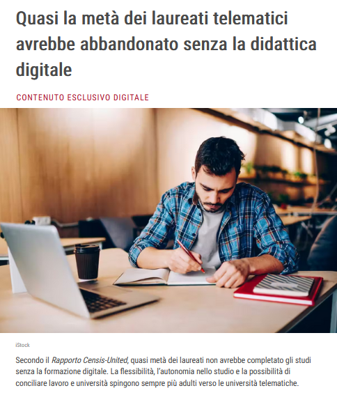 Senza la didattica digitale quasi la metà dei laureati telematici avrebbe abbandonato gli studi. Oggi nell’articolo pubblicato da “La Verità”
